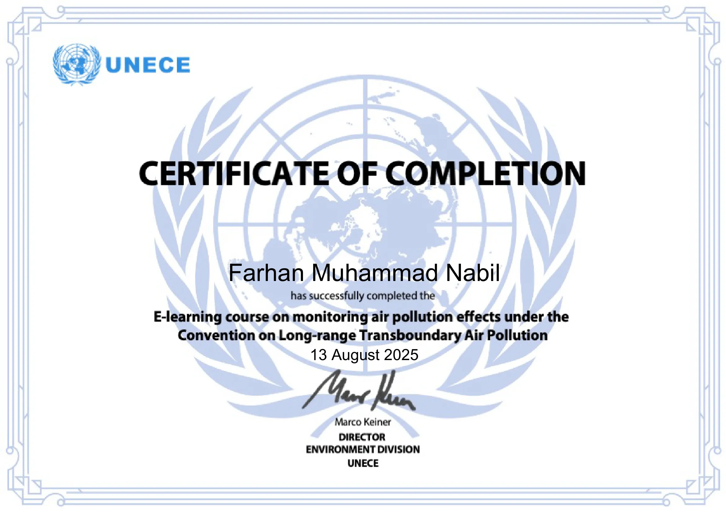 A course on the impact of air pollution and environmental monitoring under the United Nations Economic Commission for Europe (UNECE), addressing global pollution challenges.