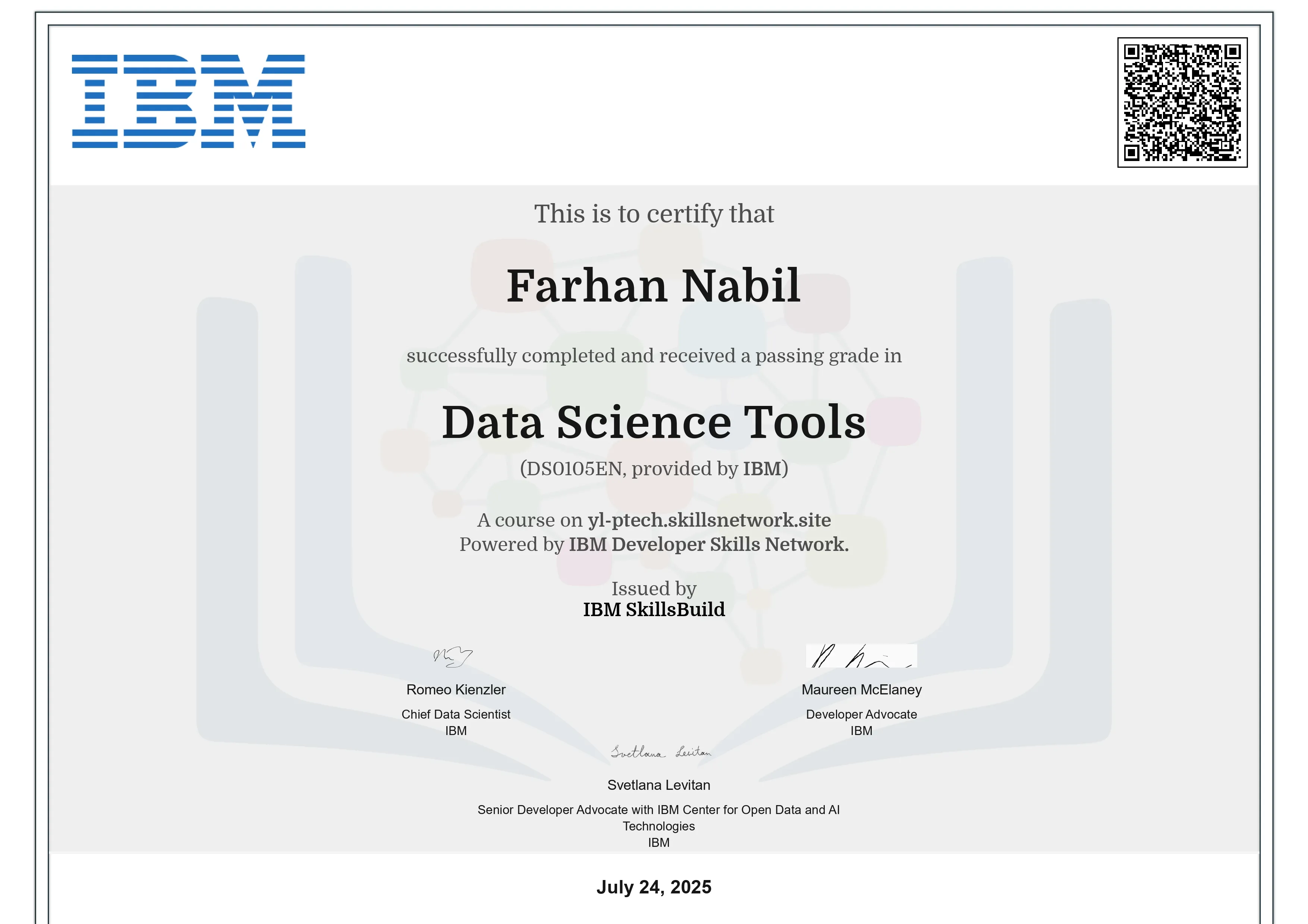 Recognizes knowledge of essential tools in the field of data science, including Jupyter Notebooks and other data processing tools, awarded by IBM SkillsBuild.